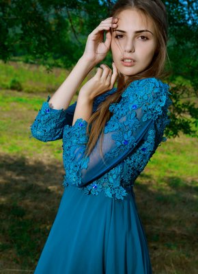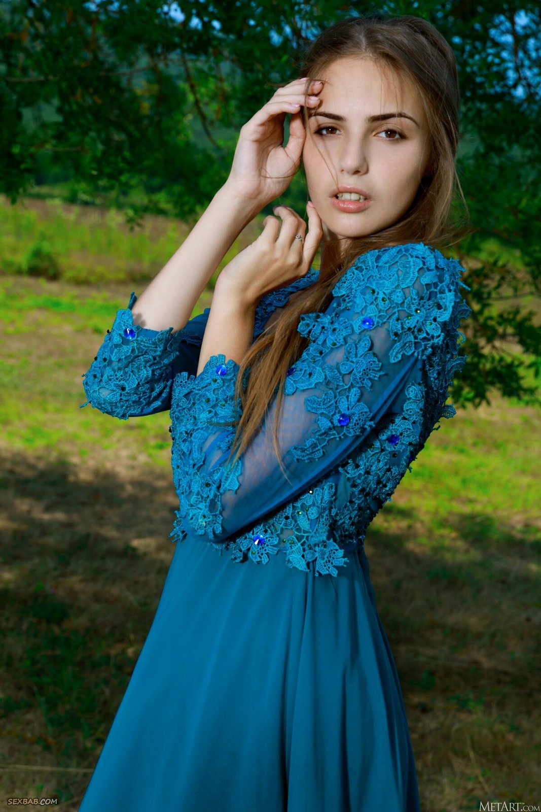 Описание: Нежно лаская свое постепенно оголяющееся тело, стройная молодая девица медленно снимает с себя шикарное платье на природе и тут же начинает открыто хвастаться своими миниатюрными прелестями. Затем обнаженная красавица ложится на траву и, широко раздвинув ножки, выставляет на показ бритую промежность с сочной розовой пиздой.