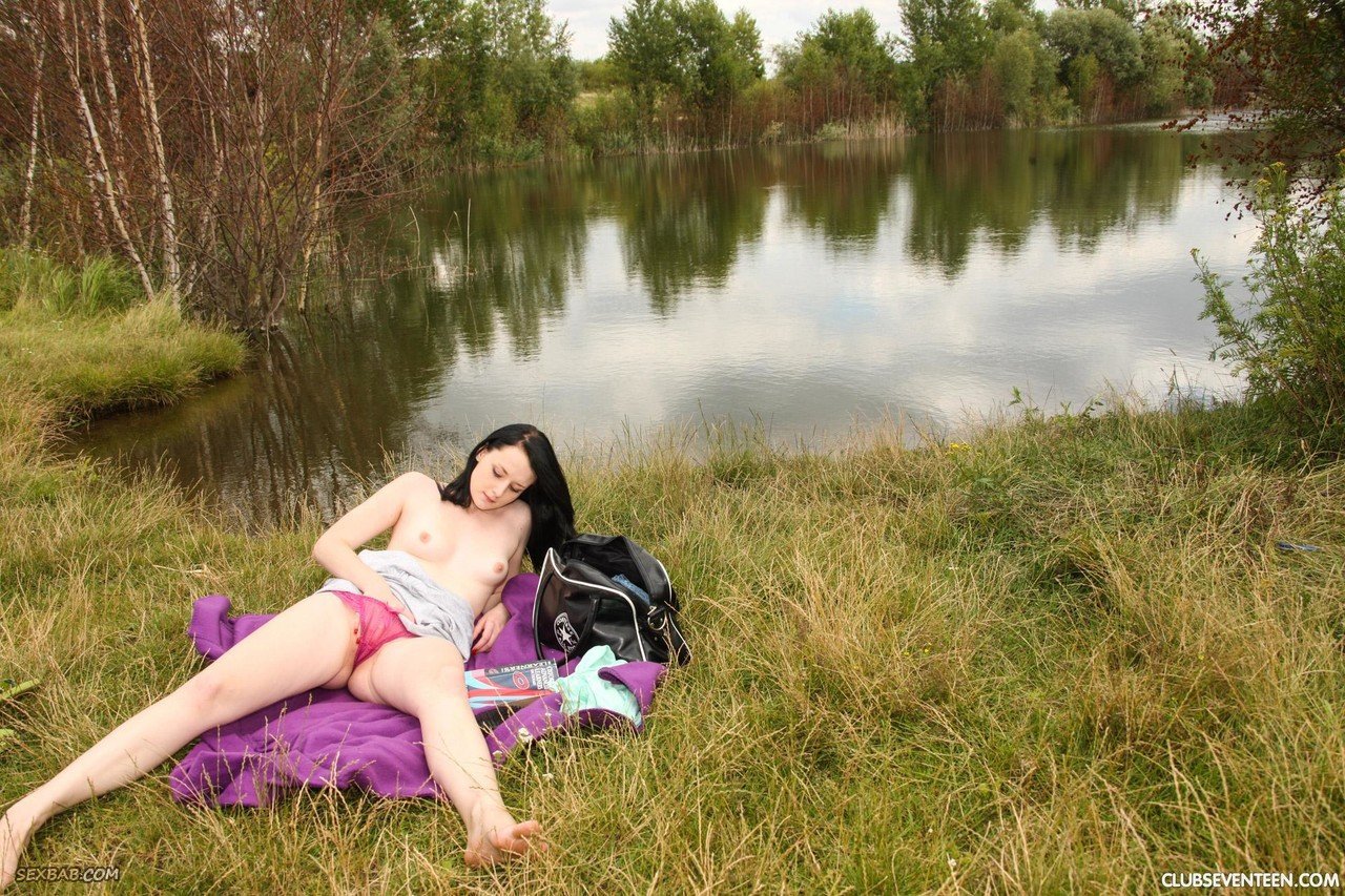 Описание: Удобно устроившись на берегу пруда, молодая простушка нетерпеливо залезает рукой в свои прозрачные трусики и нежно ласкает бритую письку на природе. Быстро скинув с себя всю одежду, возбужденная девица широко разводит перед камерой ноги и крупным планом показывает, как ее пальцы трахают сочную розовую пиздёнку.