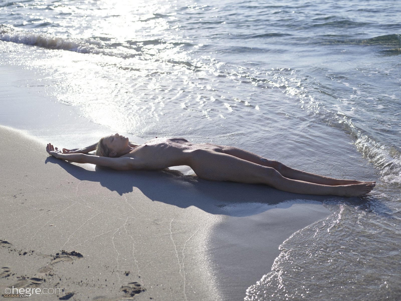 Описание: Выбравшись утром на пляже, привлекательная длинноногая девица с короткими светлыми волосами эротично позирует и показывает себя со всех сторон. Валяясь на мокром песке, сексуальная стройняшка с маленькой грудью лучше всего делала акцент на подтянутой упругой попочке и гладко выбритой письке.