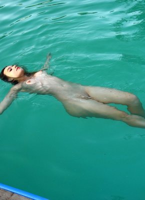 Девушка купается в бассейне без купальника