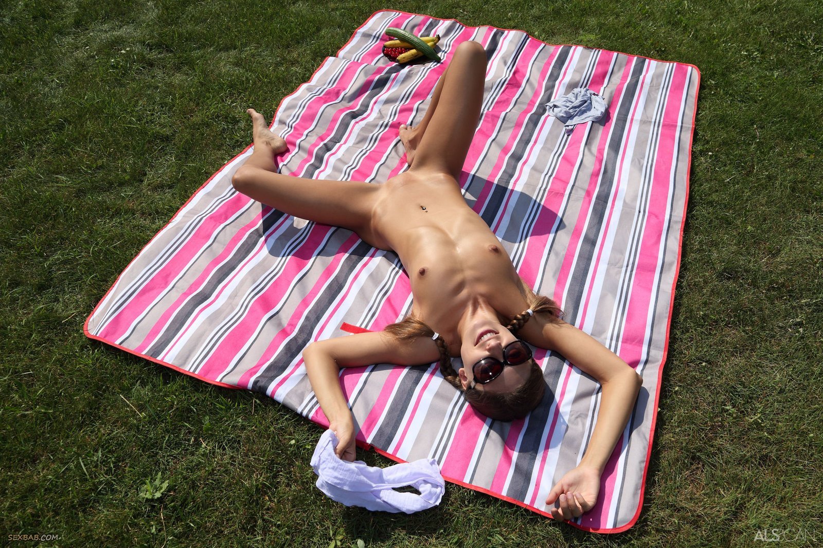 Описание: Обаятельная худышка с милой улыбкой и плоскими сиськами, находясь на природе и располагаясь на подстилке, медленно раздевается догола и чередует разные ракурсы. Обнаженной стройная девушка подробно засвечивала бритую письку и гладкий лобок, ощущая при этом желаемое удовольствие.