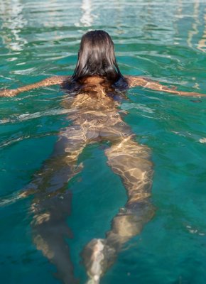 Описание: Молодая и дерзкая девушка с красивой упругой попкой игриво разделась до гола на летнем отдыхе, крупным планом демонстрируя на камеру свою бритую нежную киску. Обнаженная детка с миниатюрными упругими титьками расслабленно плавает в большом бассейне на заднем дворе, подставляя под жаркое солнце свое стройное влажное тело.