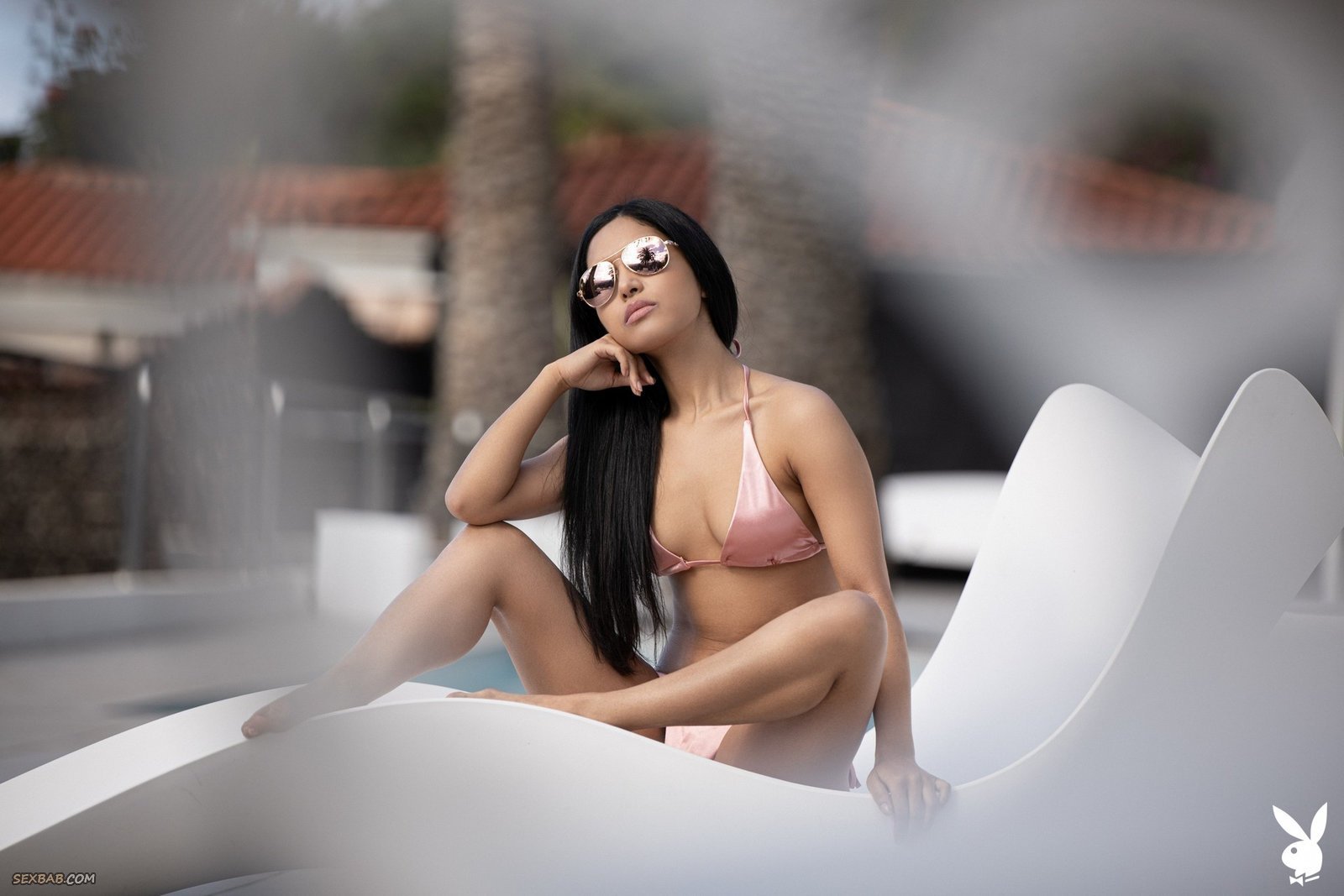 Описание: Загорелая горячая модель в розовом бикини томно лежит на шезлонге и лениво принимает чувственные эротические позы. А затем, раздевшись до гола, сексуальная мулатка начала вовсю соблазнять случайных прохожих, которые пожирают взглядами ее блестящее от пота тело с маленькими упругими титьками.