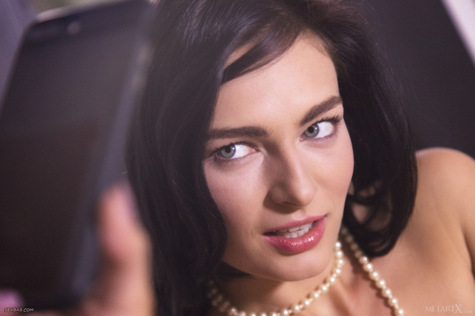 Описание: Скинув платье и трусики, темноволосая дама со стройной фигурой в чулках без трусов позирует перед камерой и делает эротичные селфи, наслаждаясь происходящим и игриво улыбаясь фотографу. В процессе съёмки брюнетка нежно сжимала сиськи руками и в самых разнообразных позах демонстрировала волосатый лобок с бритой писькой.