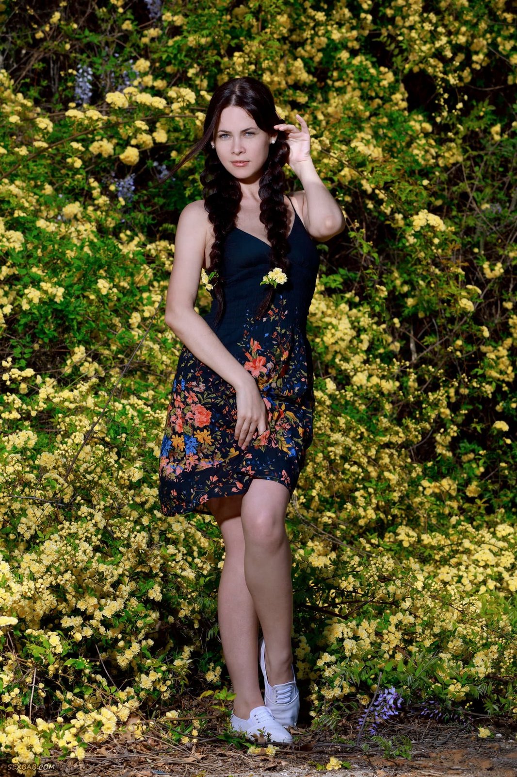 Описание: Найдя в лесу яркую цветущую поляну, молоденькая брюнетка снимает на камеру свое легкое платье без нижнего белья и позирует голой на природе. Сексуальная девица свободно на показ выставляет свои большие упругие титьки, а затем встает на траве раком и тычется в камеру свое аппетитной попкой и бритой голой промежностью.