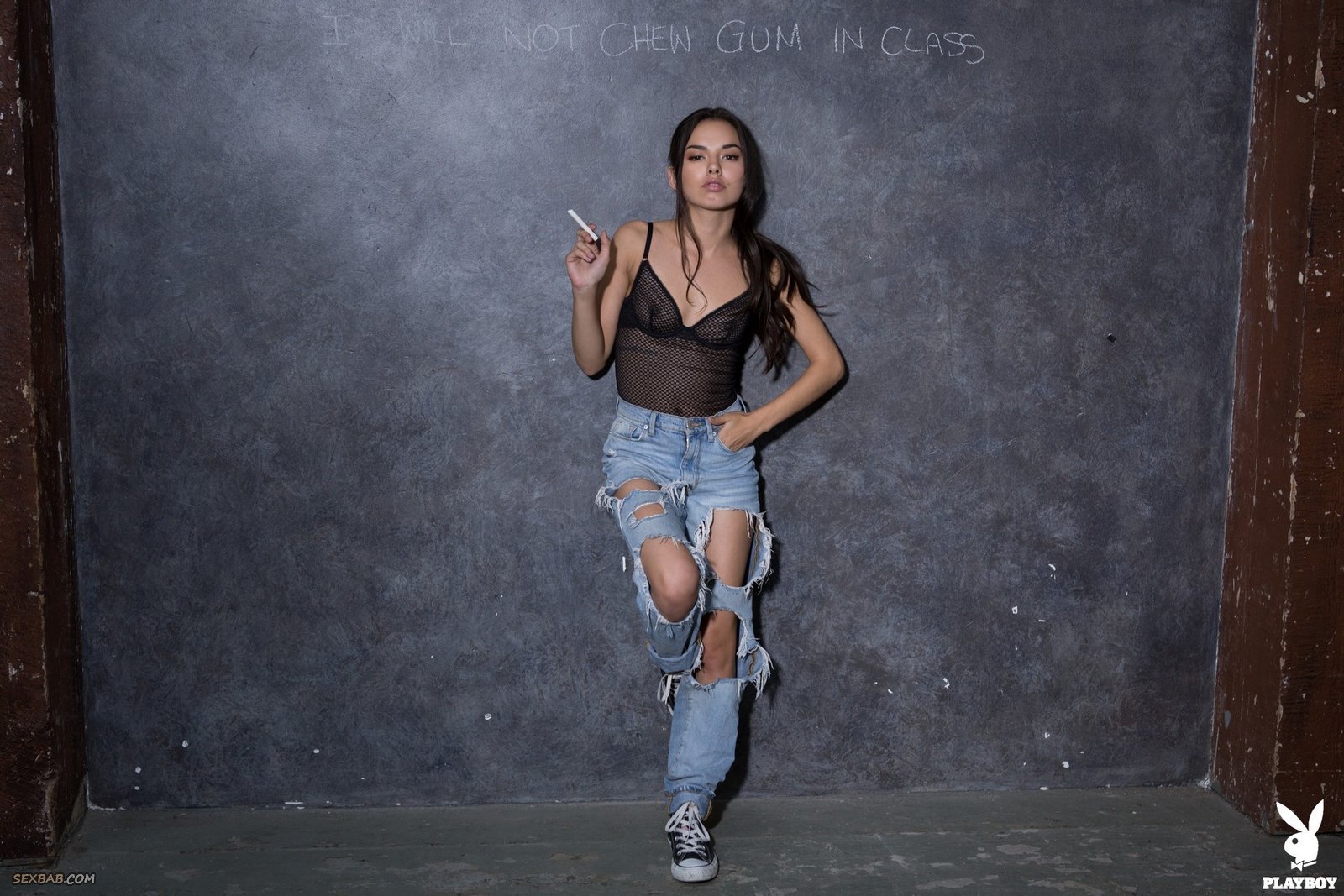Сексуальная красивая модель в порванных джинсах