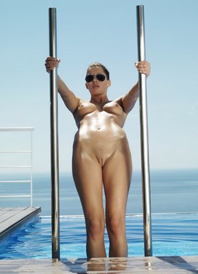 Описание: Прогуливаясь у бассейна и порой забираясь в воду по пояс, стройная и абсолютно голая девушка в одних только солнцезащитных очках получала от процесса массу волнующих эмоций и позволила нам понаблюдать за ней через объектив фотокамеры. Наслаждаясь своей откровенностью, красотка с небольшой грудью особенно тщательно показывала нам свою бритую письку с влекущими половыми губками.