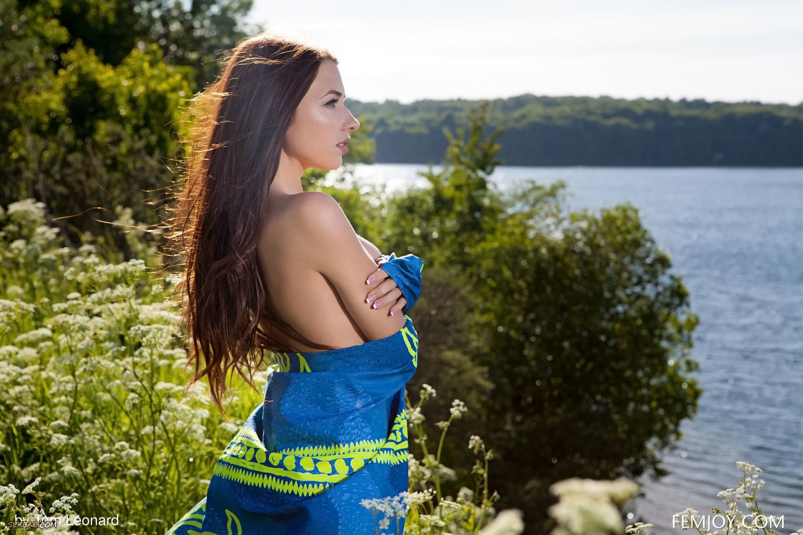 Описание: Выбравшись на природу и эротично позируя там перед фотокамерой, полностью голая девушка с упругими натуральными сиськами устраивается поудобнее на покоывале и возбуждающе прогибается раком. Оттопыривая подкаченную попку, сексуальная милашка подробно засвечивает бритую письку с гладким лобком.