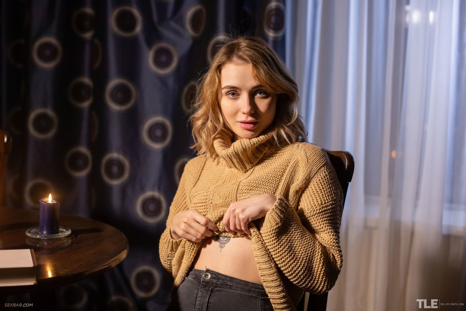 Голая девушка облила себя воском от свечи